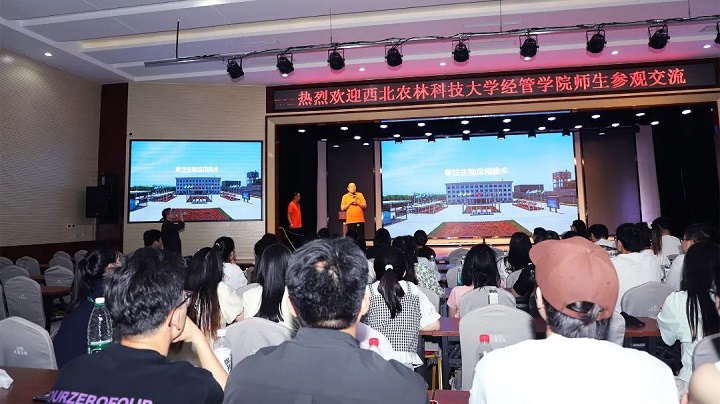 6月26日,由西北農林科技大學經濟管理學院副院長汪紅梅教授帶隊,近60名經濟學專業(yè)師生到我公司參觀交流。公司總經理閆凌鵬、副總經理麻嘯濤、羅鵬等領導進行了熱情接待。