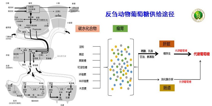 二是由非糖物質(zhì)轉(zhuǎn)化合成的葡萄糖即糖原異生。后者在反芻動(dòng)物體內(nèi)占主要地位,而丙酸是反芻動(dòng)物體內(nèi)葡萄糖異生的主要前體物。