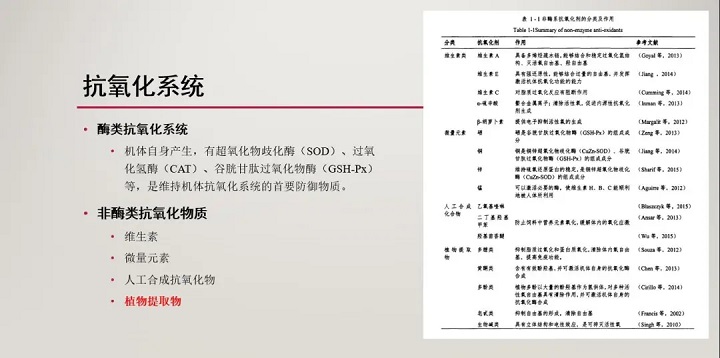 (4)植物提取物:多糖類、多酚類、皂苷類、氨基酸類等。具有生物活性高、毒副作用小、殘留率低,正成為抗畜禽氧化應激研究的熱點。