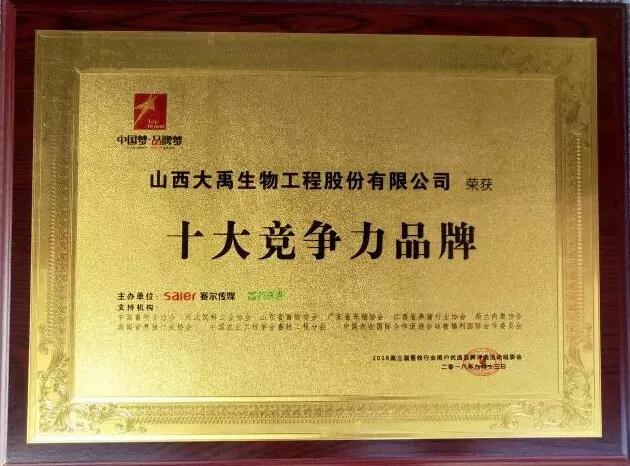 Dayu biological won "ten competitive brands"!!!